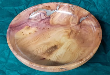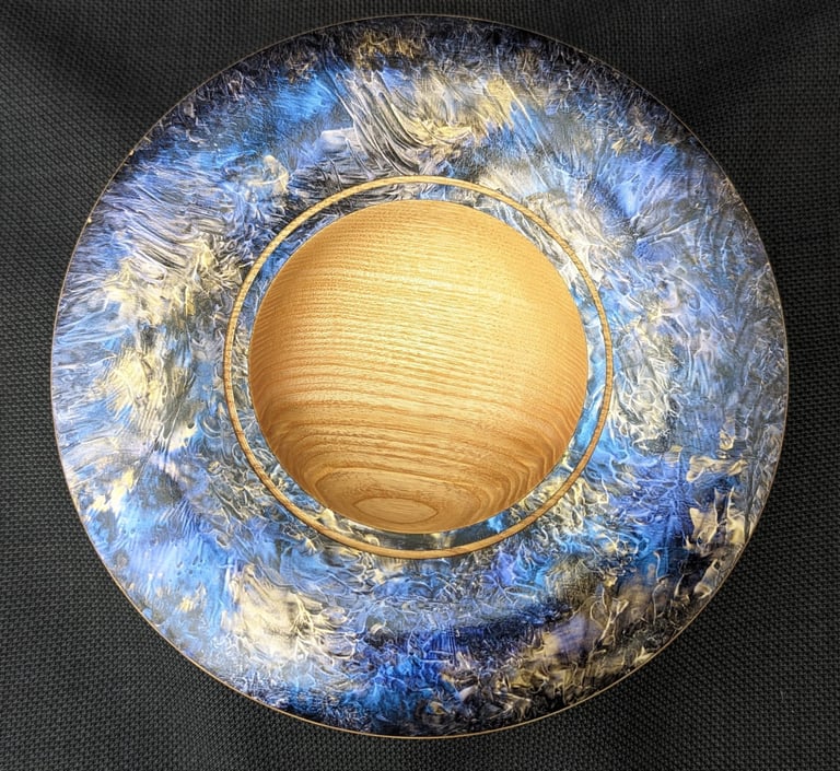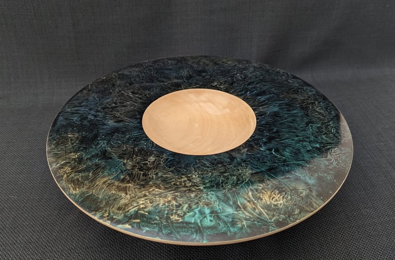 Sycamore platter with iridescent paint embellishing