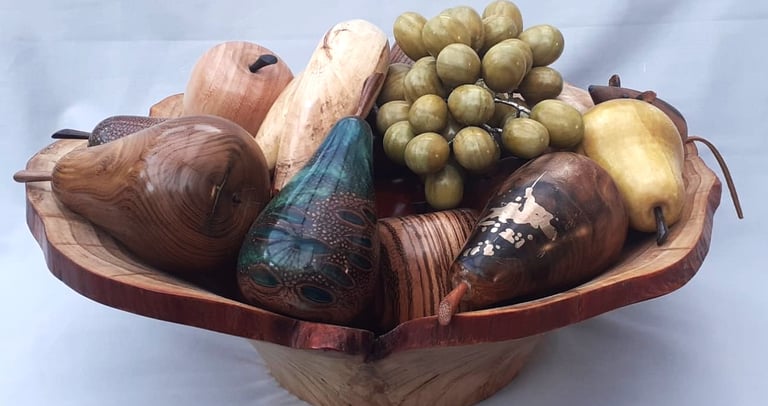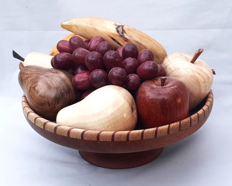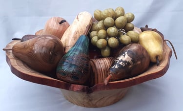 Natural edge fruit bowl grapes are stained Ash wood on tinned copper wire