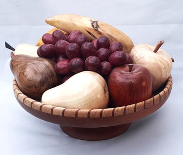 10 inch fruit bowl, grapes are Purple Heart wood on copper wires
